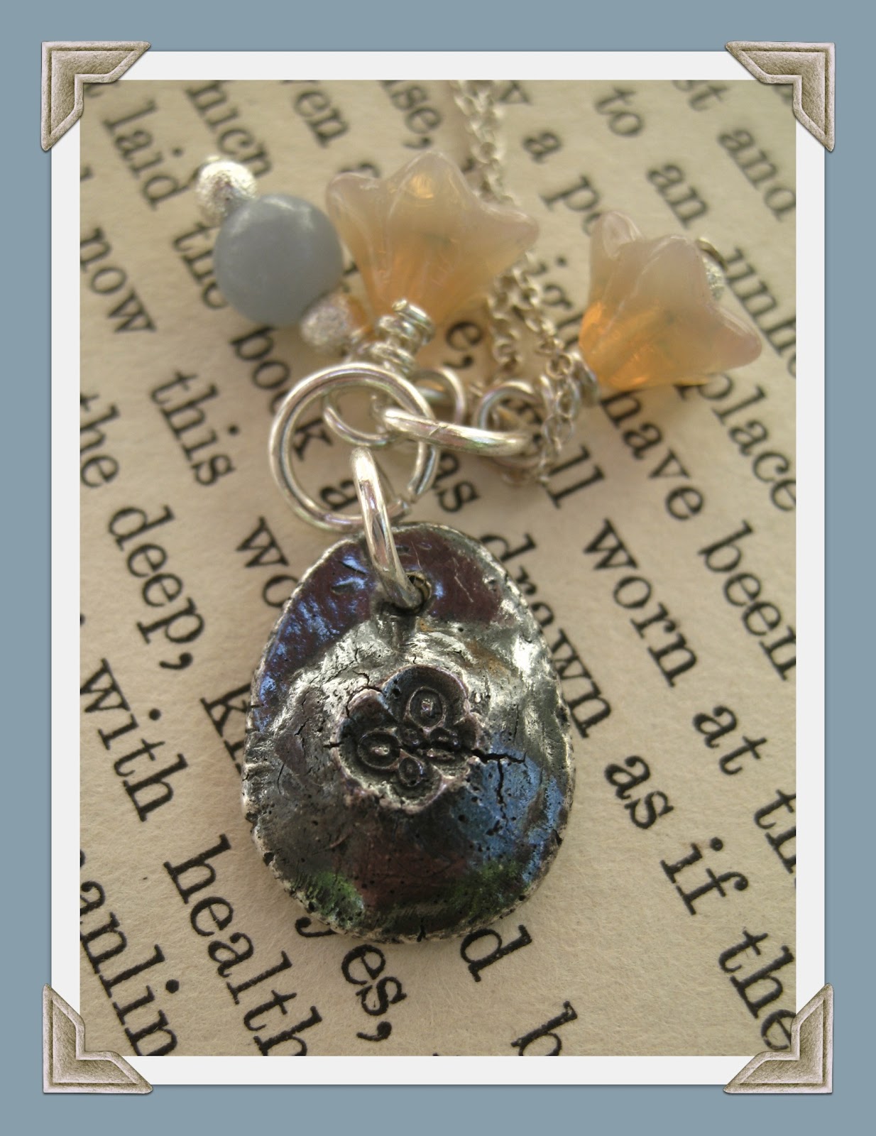 PMC sterling pendant with angelite (how appropriate) & Czech flower beads.